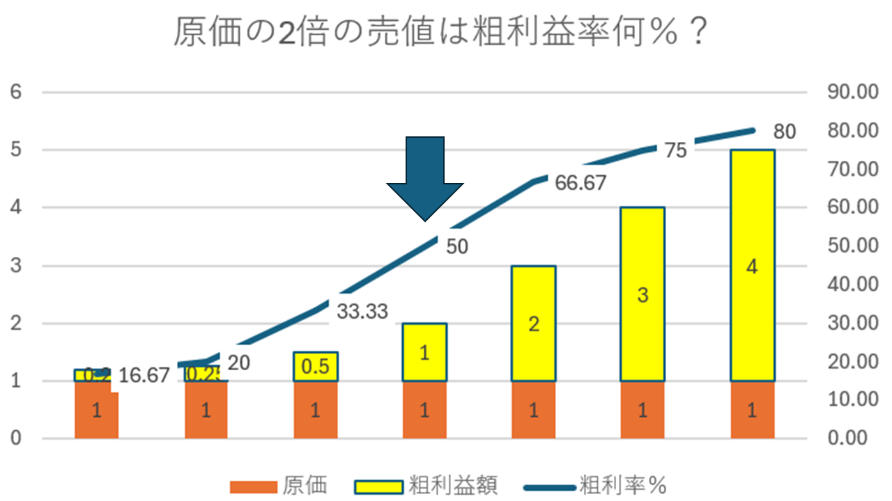 理解のため、グラフを見て考えましょう。利益率は「販売額」に対する割合です。原価ではありません。